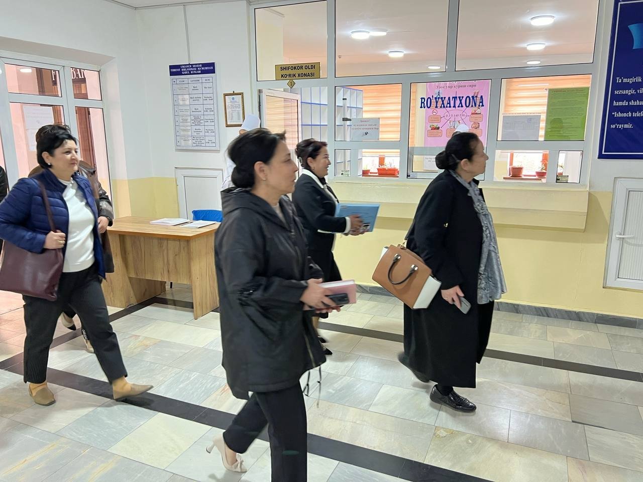 Bugun Soğliqni Saqlash Vazirining õrinbosari Elmira Basitxanova, Xorazm viloyati Soğliqni Saqlash Boshqarmasi "onalik va bolalik" bõyicha õrinbosari Gulbika Allaberganova,Urganch Shahar Tibbiyot birlashmasida barcha tuman, shahar tuğriq bõlimi va ayollar maslahat xonalari mudirlari ishtirokida Urganch Shahar Tibbiyot Birlashmasi Kõp Tarmoqli Markaziy Poliklinikasiga tashrif buyurishdi. Bunda " Reproduktiv salomatlik, onalik va bolalik bõyicha shtab kõzdan kechirilib, birlamchi, hududiy, va markaziy shtab bõyicha integratsiya masalalari, perinatal skrining xonasida homilador ayollarni grafik asosda yõnaltirish, nuqsonli homilador ayollarni erta aniqlash, onko-nazorat xonasida ayollarni kõkrak bezi va bachodon bõyni saratonini oldini olish bõyicha õz tavsiyalarini berdi.Uchrashuv savol javoblarga boy tarzda õtdi. Fotolavha :